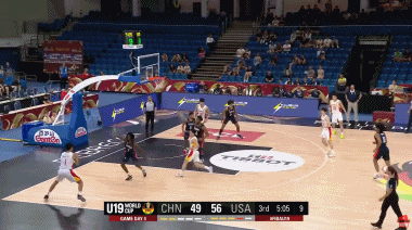 第3节还剩1分42秒,王浩然2罚全中,中国男篮U19,59-58反超美国。